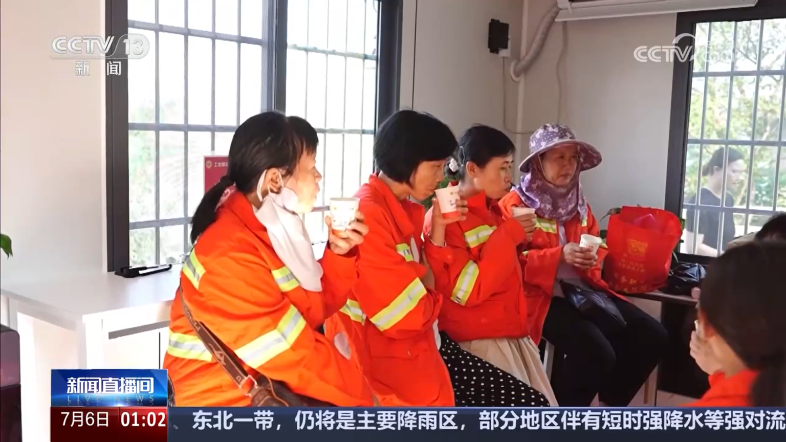 环卫工人 龙满莲:有凉茶、有绿豆还有水,在驿站休息的时候好舒服,很清凉。