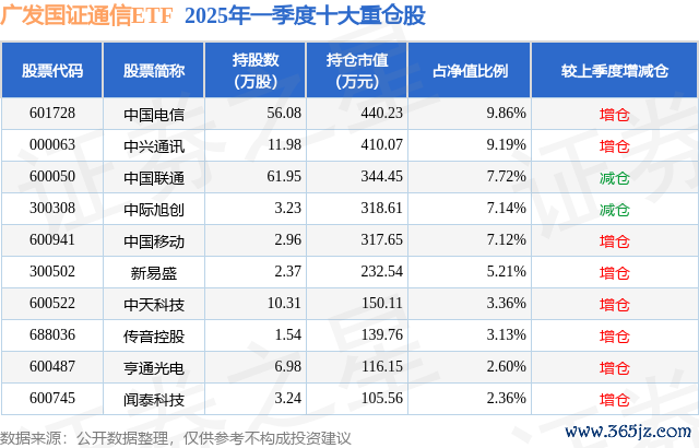 本站消息,日前广发国证通信ETF基金公布一季报658配资,2025年一季度最新规模0.45亿元,季度净值涨幅为-3.87%。