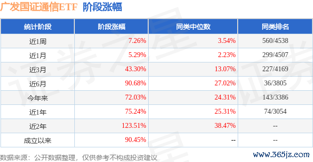 从业绩表现来看,广发国证通信ETF基金过去一年净值涨幅为11.42%,在同类基金中排名1059/2216,同类基金过去一年净值涨幅中位数为11.09%。而基金过去一年的最大回撤为-22.97%,成立以来的最大回撤为-31.3%。