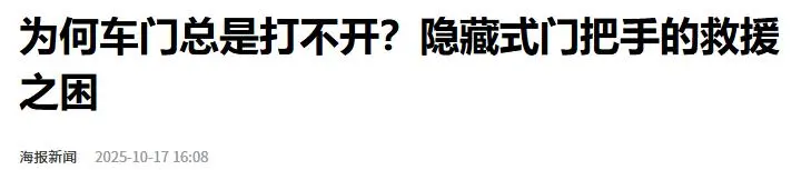近年来,多个品牌的新能源汽车都曾因隐藏式门把手失效引发救援困境。